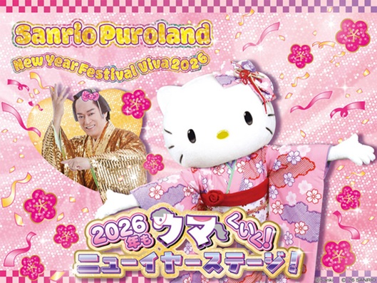 サンリオエンターテイメント(小巻亜矢社長、東京都多摩市)は運営するサンリオピューロランドで12月26日(金)から、年末年始イベント「New Year Festival Viva 2026」を開始する。2026年1月13日(火)までの期間限定で、人気俳優・松平健さんとのコラボレーションで華やかに展開する。26年は「午(うま)」年のため、「今年もきっとウマくいく!」をキャッチコピーに、和装のキャラクターたちが盛り上げる。