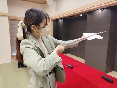さらに、実際の刀を手に取り鑑賞できる貴重なイベント「刀剣鑑賞会」に参加できる。刀に触れる前に刀剣鑑賞の作法やマナーのレクチャー、模造刀を使った練習もあり、初めて触れる人も安心して参加できる。