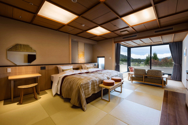 静龍フロアには専用カードキーを持つ宿泊客だけが出入り可能となった。客室は3タイプで和モダンベッドルーム(ツイン、ダブル)のほか、同館唯一の露天風呂付きスイート「翠嶺」も完成した。