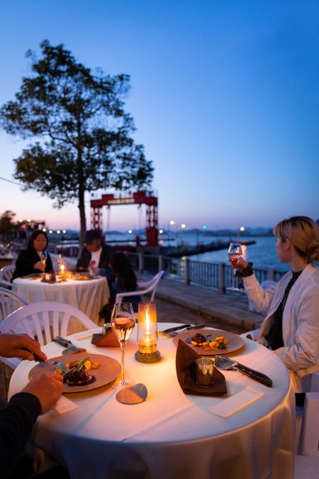 通常は午前9時から午後2時までの開催だが、夏場は土曜日の午後4時から9時の夜間営業として開催。夜の時間帯はアルコールを提供する出店者が多く、大人の雰囲気が漂う空間に様変わりするという。港に隣接する商店街の「土曜夜市」とも連動し、海辺から商店街一帯の回遊性向上にも寄与している。