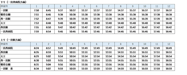 新路線は、一宮駅と一宮西病院間の約2.7キロを運行する。それぞれの方面に停留所は6カ所で、1時間に1本の1日12便。同区間の交通の便を向上させ、地域の人たちの通院や通勤、通学の利便性を高めることを目的としている。