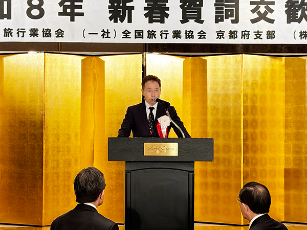 京都府旅行業協会(森野茂会長)は1月20日、京都府京都市内のホテルで、会員や協定機関などを集め、新春賀詞交歓会を開いた。