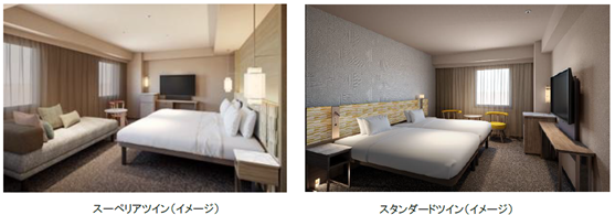 客室は全4タイプの297室。3人定員の部屋を8室から51室へ大幅に増やすほか、すべての客室で内装や家具、備品、水回りの設備を一新する。大浴場はデザインとレイアウトを刷新し、よりゆとりある空間へ改修する。女性脱衣所は新たなパウダースペースを設置し、浴場の中庭には植栽を配置する。