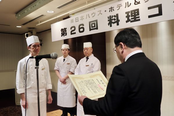 日本ハウス・ホテル&リゾート(熊谷憲一社長、東京都千代田区)は2026年2月19日(木)、ホテル東日本宇都宮(栃木県宇都宮市)で「第26回料理コンテスト」を開き、最優秀賞には中島貴弘氏(ホテル東日本宇都宮)の「香港風焼物三種」が選ばれた。