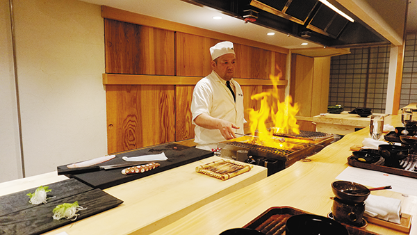 「立場割烹 むげん」で提供する特別プラン「水円コース」は厳選した食材を柴尾総料理長が目の前で調理し、一品ずつお出しします。