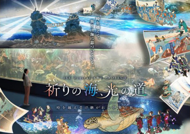 三重県伊勢市にある水族館「伊勢シーパラダイス」で3月1日から、大水槽上部に伊勢の海と祈りの文化をテーマにしたデジタルアート作品の上映がスタートする。2033年予定の「神宮式年遷宮」に向け、二見浦での「浜参宮」から始まる由緒ある伊勢神宮参拝ルートの文化的価値を広く発信しようと、JTBと共同で取り組む企画。映像制作には、NTTアートテクノロジーとネイキッドが参画する。
