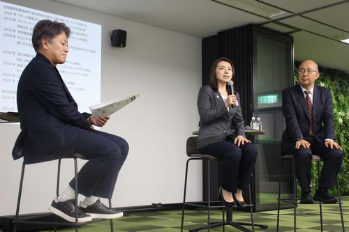後半は脇坂氏と長﨑氏に加え、ロコ・ソラーレ代表理事の本橋麻里氏を招き、「ローカルから世界へ挑戦を支えるコミュニティの力~Well-beingな社会をデザインする~」と題するクロストークを実施。地域の熱い支援を受けてカーリングチームを運営する本橋氏を交え、持続可能な地域モデルのあり方を探った。