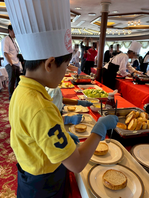 調理部門では「見習いコック」として、シンフォニーシェフと一緒にオリジナルピザとケーキ作りに挑戦する。シンフォニーオリジナルエプロンを身に付け、好きな食材を盛り付けたランチを船上で楽しめる。