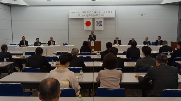 国際観光日本レストラン協会(鍔一郎会長、136会員)は3月11日(水)、東京ビッグサイト(東京都江東区)で第13回通常総会(第69回)を開いた。任期満了に伴う役員改選では、鍔会長が再選された。