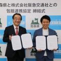連携協定事項は①観光・文化の振興に関すること②県産農畜水産物の魅力発信に関すること③国際交流に関すること④持続可能な地域公共交通に関すること⑤災害対策、地域の暮らしの安全・安心の確保に関すること⑥子どもに関すること⑦その他地域の活性化・県民サービスの向上に関すること――の7項目。