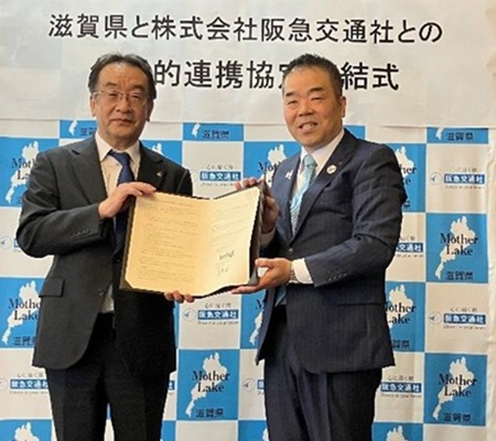 阪急交通社(酒井淳社長、大阪府大阪市)は滋賀県(三日月大造知事)と3月12日(木)、に包括的連携協定を結んだ。県の観光・文化の振興や県産農畜産物の情報発信など幅広い分野で地域の課題解決に向け取り組む。
