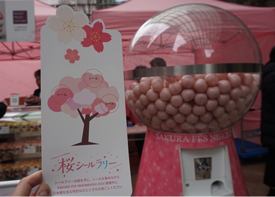 期間中、桜メニュー&グッズの対象2エリアで買い物をした人や日本橋パフェスなどのイベント会場に来場した人にそれぞれシールを配布する「桜シールラリー」を開催している。3種類のシールを集めると、ガチャガチャ抽選会に参加できる。参加賞の缶バッジのほか、周辺で利用できる商品券や体験メニューなどの賞品を用意する。