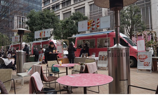 昨年初開催で好評だった、屋外カフェでの「日本橋パフェス」は今年も実施する。イベントのキービジュアルを装飾した桜キッチンカーがCOREDO室町テラス大屋根広場に並び、出展する6店舗が多彩なパフェを提供する。