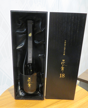 花の舞18は720ミリで、希望小売価格1万8000円(税別)。蜜の入ったリンゴや洋梨、マスカットを思わせる華やかなフルーツのアロマと、品のある蒸米の香りが広がる。上品な甘みを繊細な酸が支え、たおやかな旨味の余韻が深い満足感をもたらす。