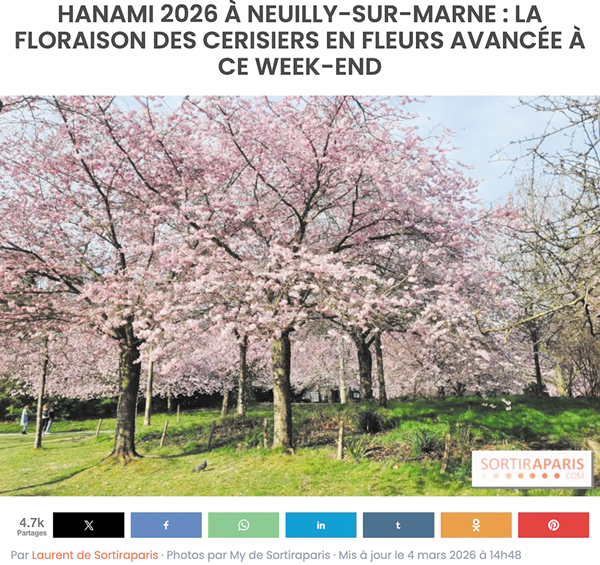 フランスは、世界で最も早くさまざまな日本文化を受容する国だろう。最近、日本通のみならず一般層にまで浸透しているのが「HANAMI」だ。◆数十年前から在仏日本人の間では、国内の花見スポットは知られており、小規模な集まりが催されていた。◆ところが、数年前からは開花時期に合わせた日本関連行事や、自治体のPR活動が活発化。一般のフランス人にもHANAMIとして定着してきている。◆今年に入ると、一般メディアでもフランス語で「le Hanami」という表現が頻繁に見られる。◆仏有数の桜の名所、パリ近郊のソー公園は、広さ33㌶(東京ドーム約7個分)を誇り、昨年は花見客56万人が訪れたという。◆今年は、さらなる混雑が予想されるため、樹木や園内環境の保護を目的に、管理自治体は予約制を導入。1日3500人に制限した。◆ただし、これは公園の一部のみの措置で、他のエリアでは通常通りピクニックを楽しめる。この公園以外にも、仏各地に花見の名所は点在しており、フランスでも春の風物詩として定着しそうだ。