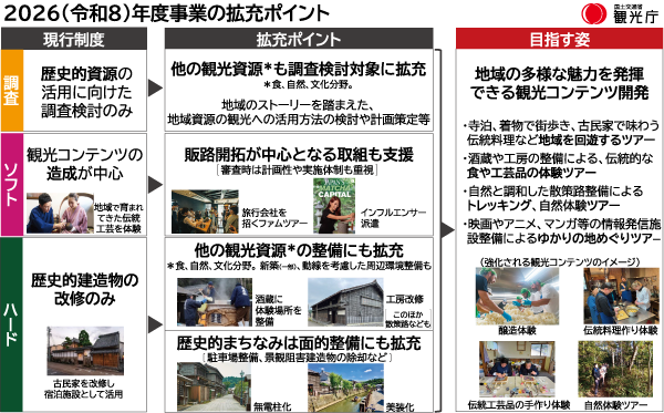 □観光資源のコンテンツ化支援、面的活用に向けて事業対象拡充へ