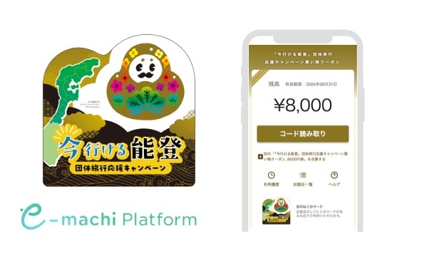 石川県は3月から「『今行ける能登』団体旅行応援キャンペーン」を実施している。8人以上の団体が能登12市町を周遊する旅行を企画する県内外の旅行会社を対象に助成するもので、その助成の一区分である「買い物クーポン」(電子クーポン)の発行・運用基盤として、ギフティ(太田睦・鈴木達哉代表取締役、東京都品川区)が展開する「e街プラットフォーム®」を導入した。ギフティが石川県観光連盟から委託を受け提供するもので、同社が石川県の観光振興を目的とする事業へのプラットフォーム提供は3案件目となる。