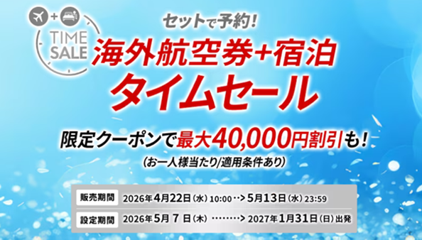 販売期間は5月13日(水)まで。対象の期間は5月7日(木)~2027年1月31日(日)出発。