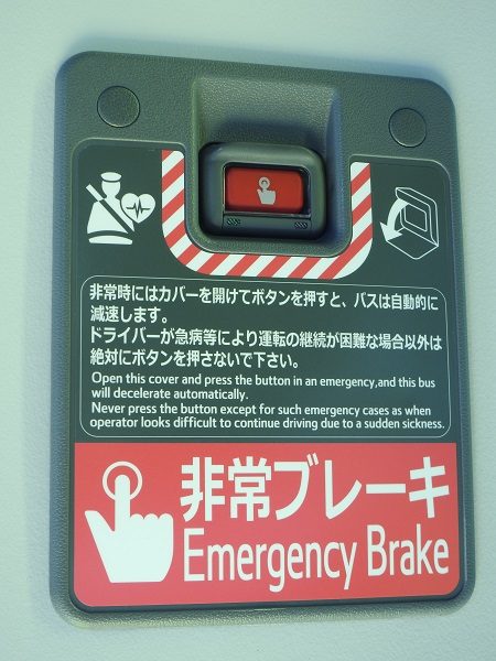EDSSは、国土交通省策定のガイドラインにそって開発されたシステム。ドライバーやバスガイド、乗客が非常ブレーキボタンを押すことで、バスを緊急停止。同時に車内の乗客に対し、ブザーと赤のフラッシャーランプで異常を知らせる。また他の車両や歩行者に対しては、警笛やハザードランプとブレーキランプの点滅で異常を伝える。非常ブレーキボタンは、客席に2つ、運転席に1つあり、客席のスイッチはブレーキ作動までに3秒の間隔をもたせ誤押を防止。運転席にあるスイッチで、解除できるようになっている。