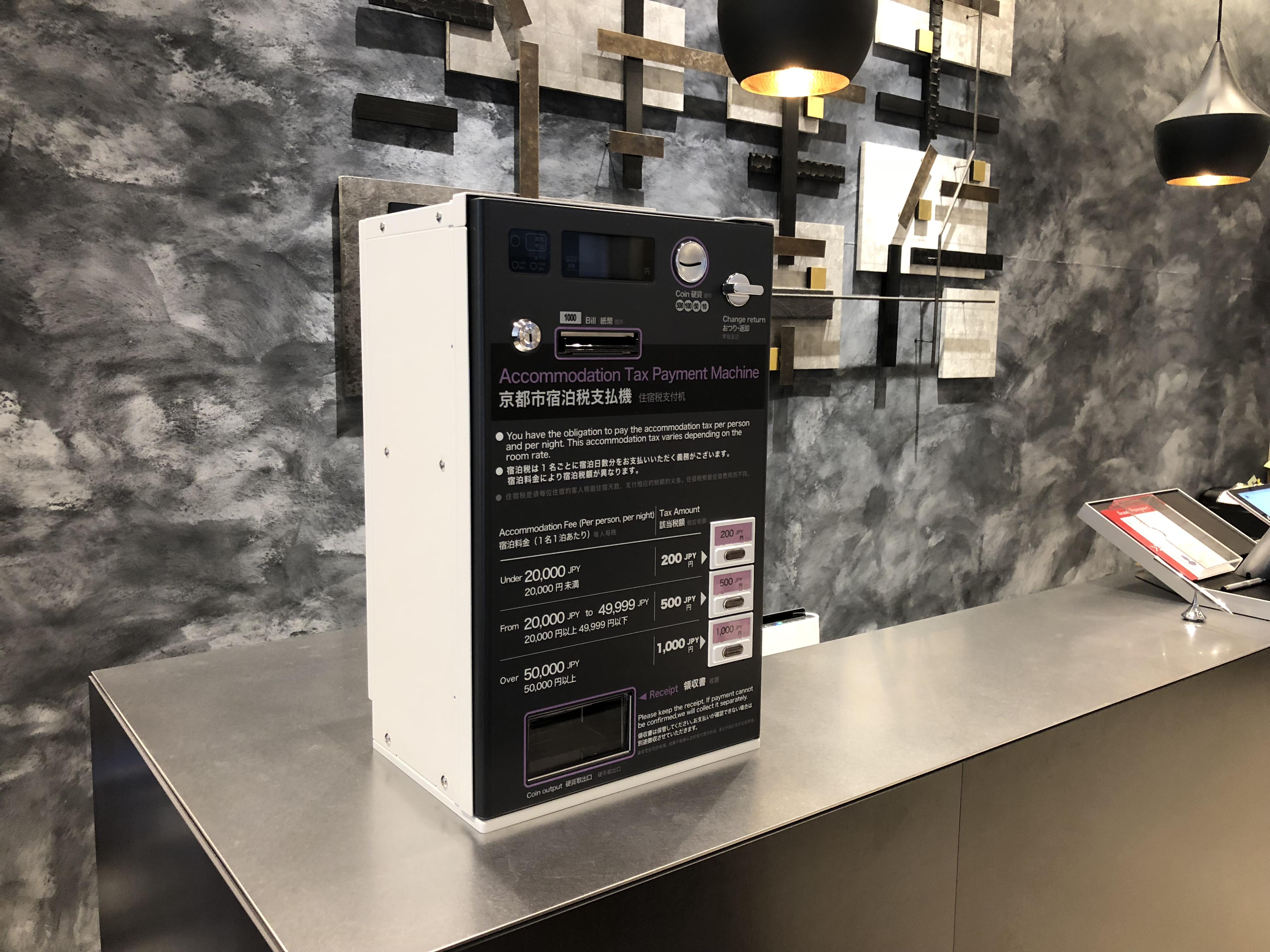 アーキエムズ(村田雅明社長、京都市中京区)とソリューションエムズ(上田篤史代表、京都市中京区)は9月28日(金)から、京都市での宿泊税条例施行に合わせて宿泊税支払機のレンタルを始めた。フロントスタッフの現金徴収業務負担を軽減する。条例施行日の10月1日(月)から市内62施設で随時導入していく。