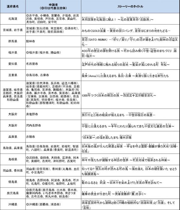 □新規日本遺産認定リスト・主なストーリーの紹介