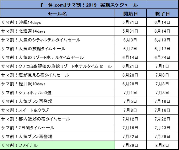 「サマ割!2019」キャンペーンページ(一休ホームページ内):