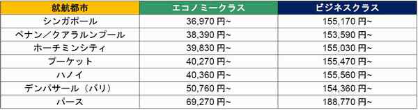 ※掲載運賃は、6月23日発券時の空港施設料や空港税などをすべて含めた大人1人分の支払い総額となっている。購入時の為替レートより金額が変動する。運賃の適用規則条件が適用される。
