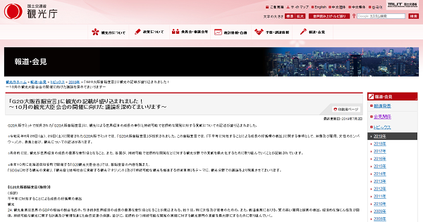 観光は世界経済成長の重要な牽引役 「G20大阪首脳宣言」に記載 観光庁
