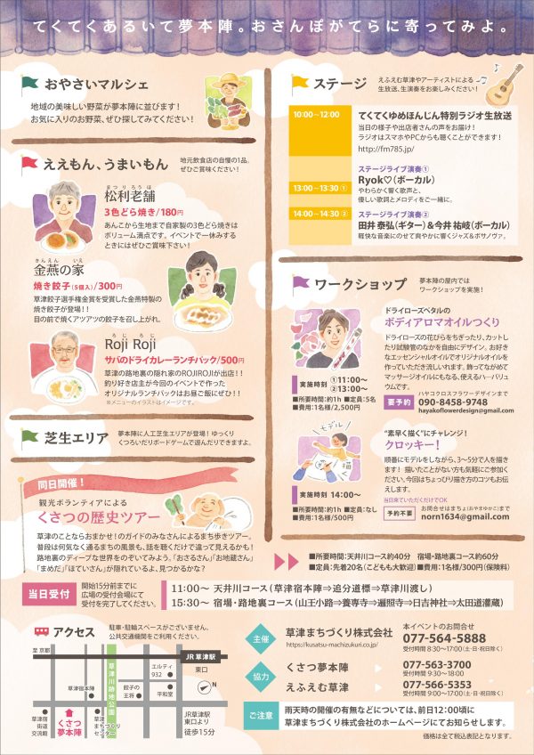草津まちづくり(滋賀県草津市)は9月14日(土)、くさつ夢本陣で「\てくてく/ ゆめほんじん」を行う。