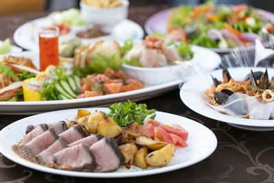 前菜盛り合わせ・バーニャカウダー・スパゲッティ・ローストビーフ・デザート盛り合わせ