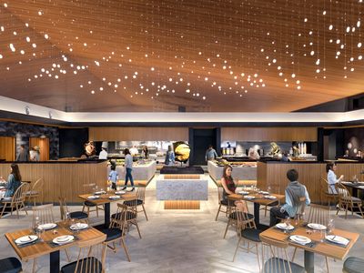 レストランの名称は「Dining Marché Green Court(ダイニング マルシェ グリーンコート)」に決定。総席数約250席で大小の個室6室も完備する。