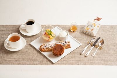 宮津湾・伊根湾と姉妹湾提携のモン・サン=ミシェル湾のあるブルターニュ地方伝統のクイニーアマンなどに、フランスを代表するマリアージュフレール紅茶を合わせ、丹波の氷上ヨーグルトとチーズをあわせたチーズケーキに地元の季節の果物を使ったソースをかけてお召し上がりいただくクレームダンジュには、丹鉄オリジナルブレンドの丹鉄珈琲を合わせた。日本三景「天橋立」に向かう森に囲まれた癒しの空間の中で、ここでしか味わえないフランス風の朝食を楽しめる。