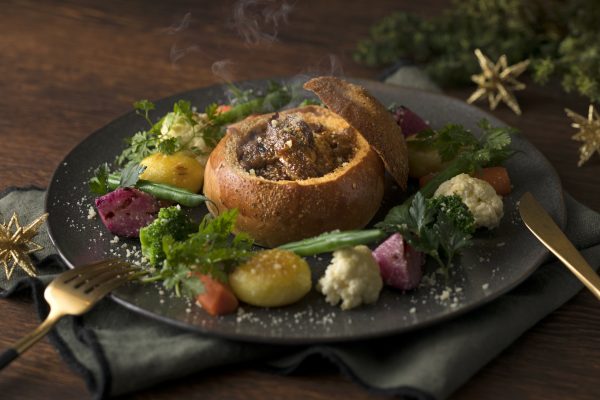 「マリブファーム 逗子マリーナ」ではディナータイムに、クリスマス限定メニュー「和牛筋の赤ワイン煮込み クリスマスリース仕立て」が登場する。 黒毛和牛の筋肉をじっくり煮込み、 赤ワインとフォンドヴォーを加えて濃厚な味わいに仕上げた一品で、 添えられた彩り豊かな野菜とパルメザンチーズで、 粉雪を纏ったクリスマスリースをイメージした。