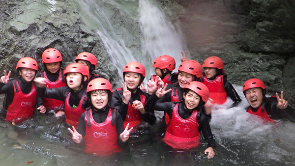10月21、22日の1泊2日で実施した修学旅行には6年生(全11人)の生徒が参加し、町内でキャニオニングやレイクカヌー、一ノ倉沢ハイキングなどを体験。宿泊は谷川温泉の高級旅館「別邸仙寿庵」(久保英弘社長)の全面的な協力を受け、館内で浴衣の着付けや入浴時のマナーを学び、地元の食材を使った大人と同じ会席料理を食べ、旅館での「おもてなしの心」について理解を深めた。