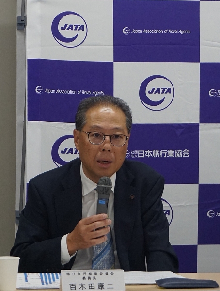 訪日旅行推進委員会の百木田康二委員長(東武トップツアーズ社長)は、都道府県別の訪日外国人回復状況(24年1~4月累計延べ宿泊者数)について、23年比平均で66%増、19年比平均で28%増となったと報告した。「回復率には地方でばらつきがあり、オーバーツーリズム対策と一口に言っても一様ではない。平準化のために、地方への誘客が喫緊の課題である」という認識を示した。