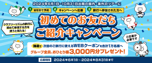 クラブツーリズム、友だち紹介CP 1万人に3000円分当たる(8月31日まで)