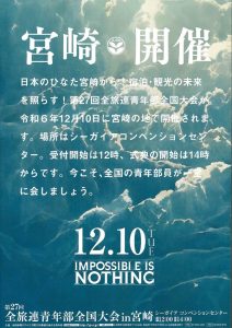 2024年10月27日(日) 配信 全国旅館ホテル生活衛生同業組合連合会青年部(塚島英太部長)は12月10日(火)、宮崎県...
