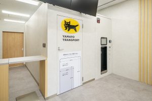 自動搬入型荷物保管システム「バゲッジキーパー」 無人受付でスーツケースを預け入れ(オカムラ)