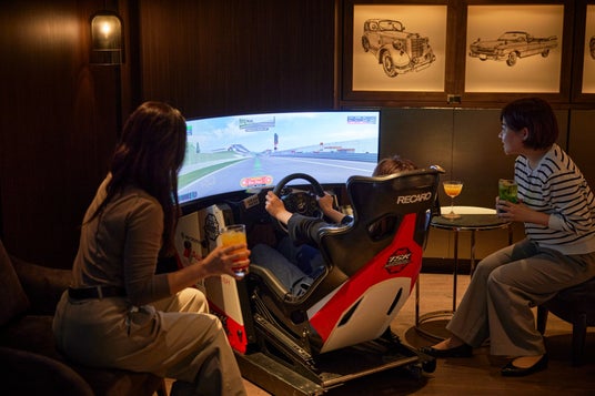 ホテル館内では、客室からのレース観戦や、モータースポーツを気軽に楽しめるアクティビティを通じて、その魅力を存分に体感していただけます。全120室のうち、サーキットビューの客室からはメインサーキットの約3分の1にあたるセクター3を一望。バルコニーに出れば、エンジン音とともに迫力のレースシーンが広がり、室内のテレビで実況を聞きながら、優雅な観戦を楽しむことができます。また、ジムにはプロ仕様のレーシングシミュレーターを完備。クルマごとに異なる振動やサウンドをリアルに再現し、時速250kmで富士スピードウェイを駆け抜けるレーサー気分を味わえます。さらに、BAR 4563の個室では、シミュレーターと共に飲食も楽しめます。精緻なグラフィックとリアルなシミュレーションが、レース観戦前夜の高揚感を一層引き立てます。