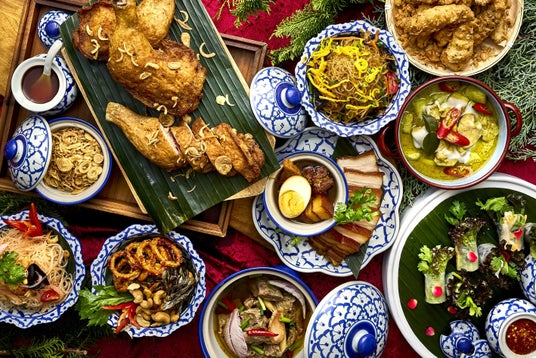 ケイジャン蟹ピラフ、ハジャイ風鶏の唐揚げ、3種のクリスピー食材を使ったタイ風サラダ、春雨サラダ、フレッシュ スプリングロール、チキンミンチサラダ、牛肉入りスパイシースープ イサーン風、ポークレッドカレー、プーパッポンカレー(蟹のカレーパウダー炒め)、春雨の炒め物、シーフードとパイナップルのタイ風炒飯、牛肉の黒胡椒炒め、ジャスミンライス