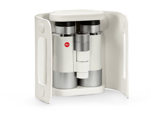 「ライカ ウルトラビット ホワイトオーシャン 7x42」にあわせて上質なポーチやストラップなどのアクセサリーも展開されます。これらの専用アクセサリーも双眼鏡本体と同様に特別なデザインで双眼鏡本体にマッチするカラーリングも揃えています。ポーチは、ラッピングクロスのように双眼鏡本体を包み込んでマグネットで留める仕組みになっており、双眼鏡本体をしっかりと保護できます。また、船上などでチーク材やラッカー塗料を使用したすべりやすい表面に置いても安心です。