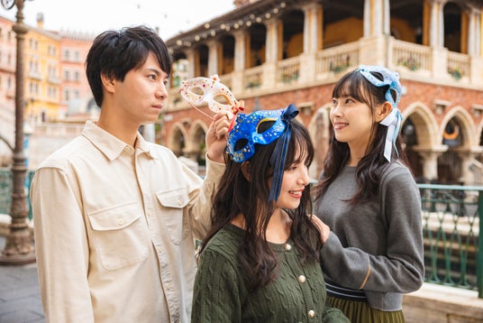 物語の世界にぴったりな、カーニバルマスクが登場します。ストーリーでは、カルロやドメニコといったゴンドリエたちが自分だけのオリジナルマスクをデザインしています。販売されるカーニバルマスクでも装飾パーツやリボンが付属しているので、カルロたちのようにオリジナルのマスクにデコレーションすることができます。お気に入りのカーニバルマスクを身につけて、パラッツォ・カナルを楽しんでみませんか。