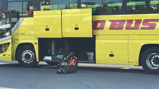 乗客・乗務員をバス後方の非常口から非難させた後、ロボットによる爆発物の撤去作業が行われました。