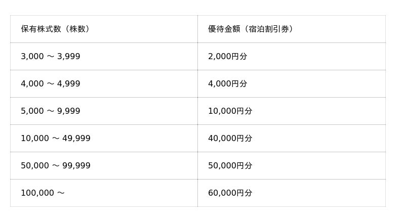 なお、2026年3月31日現在の当社株主名簿に記載または記録された株主様を対象に新制度を適用させていただきます。「宿泊割引券」の発送は、2026年7月上旬を予定しております。