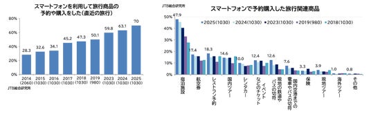 (株)JTB総合研究所は、「スマートフォンの利用と旅行消費に関する調査(2025)」を実施しました。本調査は2013年から調査を開始し、本調査で10回目となります。