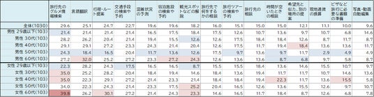 (表2) 旅先で利用したいAIサービス(性年代別)