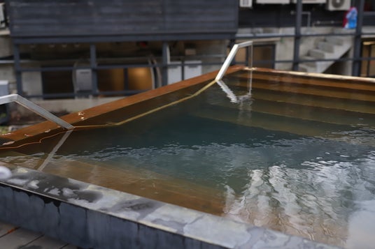 サウナの目の前には、天然の井戸水を引いた大きな水風呂を備えています。鉄分を豊富に含んだ”鉄水風呂”は、やわらかな冷感と肌にまとわりつくような独特の感触が特徴。温冷のコントラストをより立体的に引き立て、深く息をつくような心地よさをもたらします。