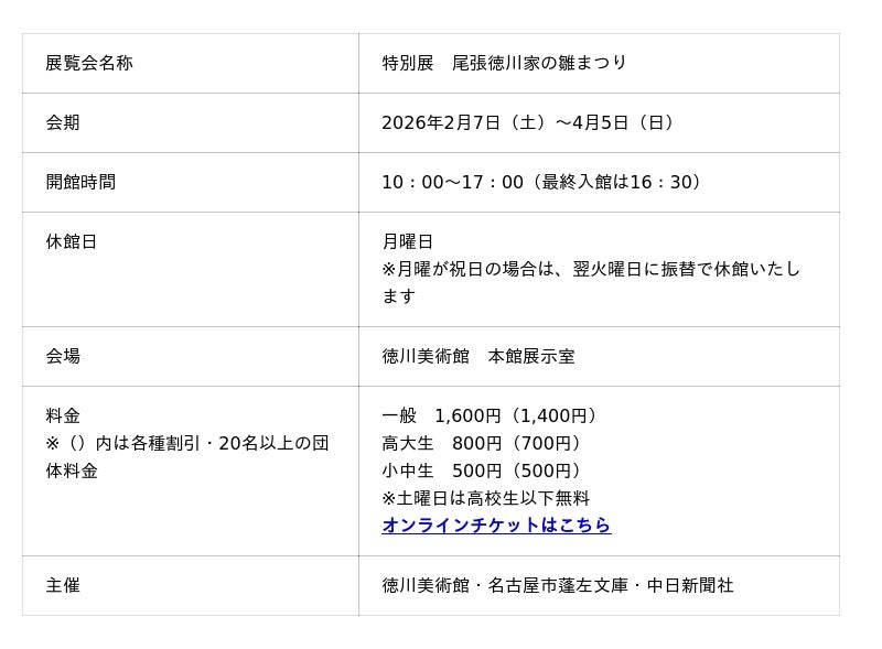 名古屋に早春を告げる風物詩、特別展「尾張徳川家の雛まつり」開催