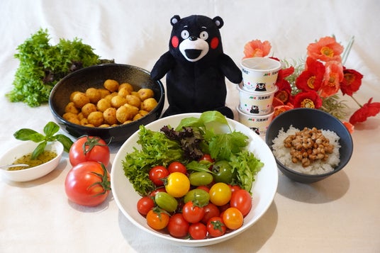 くまモン出張ToDo2. 朝食フェア「熊本が誇る、自慢の味をおすそ分けだモン!」全国28施設で開催 WHGホテルズでは「早起きしたくなる、朝ごはん。」をコンセプトに、季節や地域に合わせて手作りにこだわった常時40メニュー以上の朝食ビュッフェをご提供中です。今回、全国28施設において熊本県産の食材や郷土料理を紹介する朝食フェア「くまモンのおもてなし。~熊本が誇る、自慢の味をおすそ分けだモン!」を開催します。熊本県産の旬のジューシーなトマトに阿蘇産バジルを効かせたドレッシングを合わせたサラダや、一口サイズで食べやすい熊本名物「辛子れんこんボール」、熊本でおなじみの「元気納豆」など、熊本の素材そのままのおいしさを味わい、元気な1日のスタートを切ってください。
