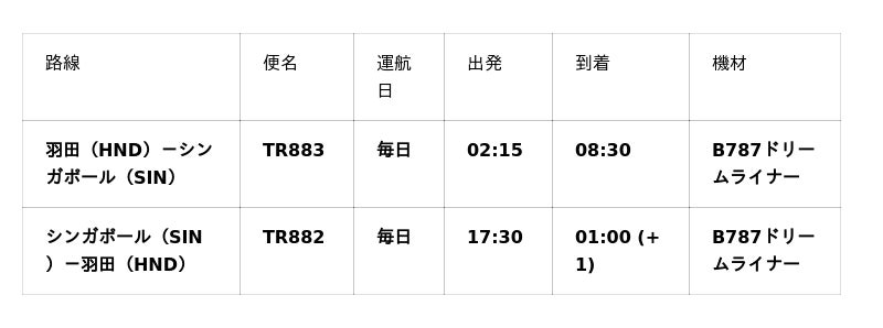 <東京(羽田)=シンガポール線 フライトスケジュール>